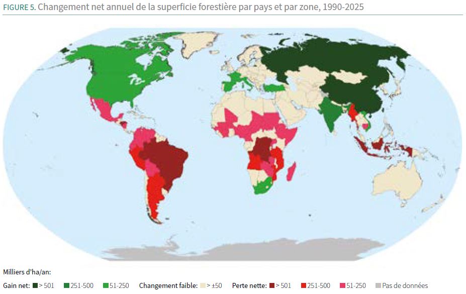 Comme tous les 5 ans, la FAO publie son évaluation des ressources forestières mondiales 2025 (236 pays, de 1990 à 2025).